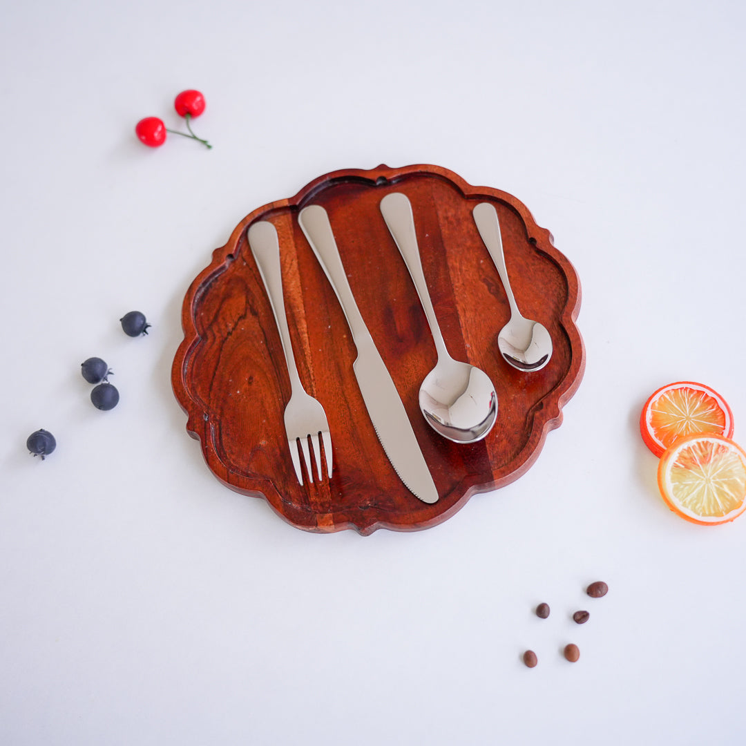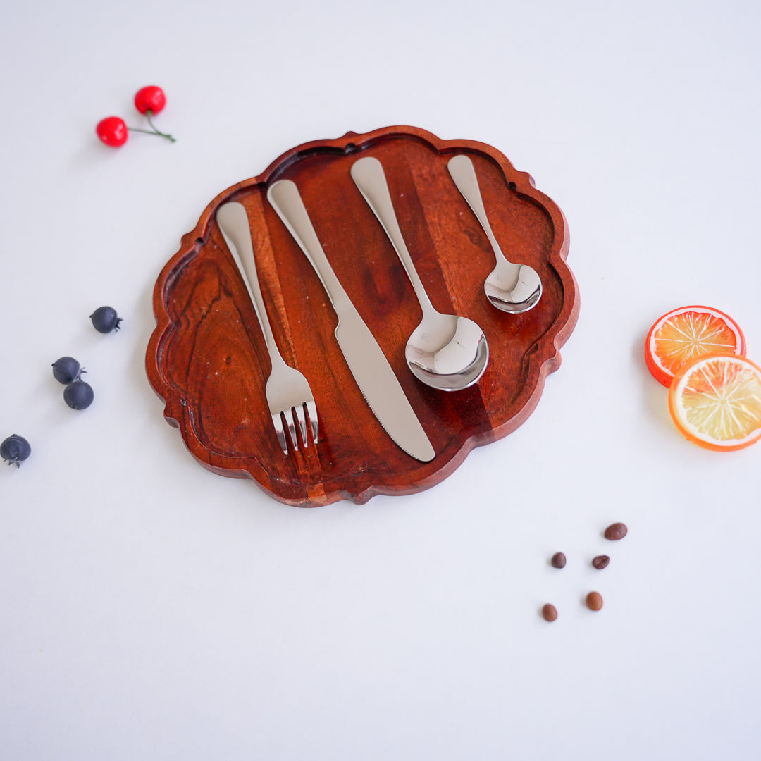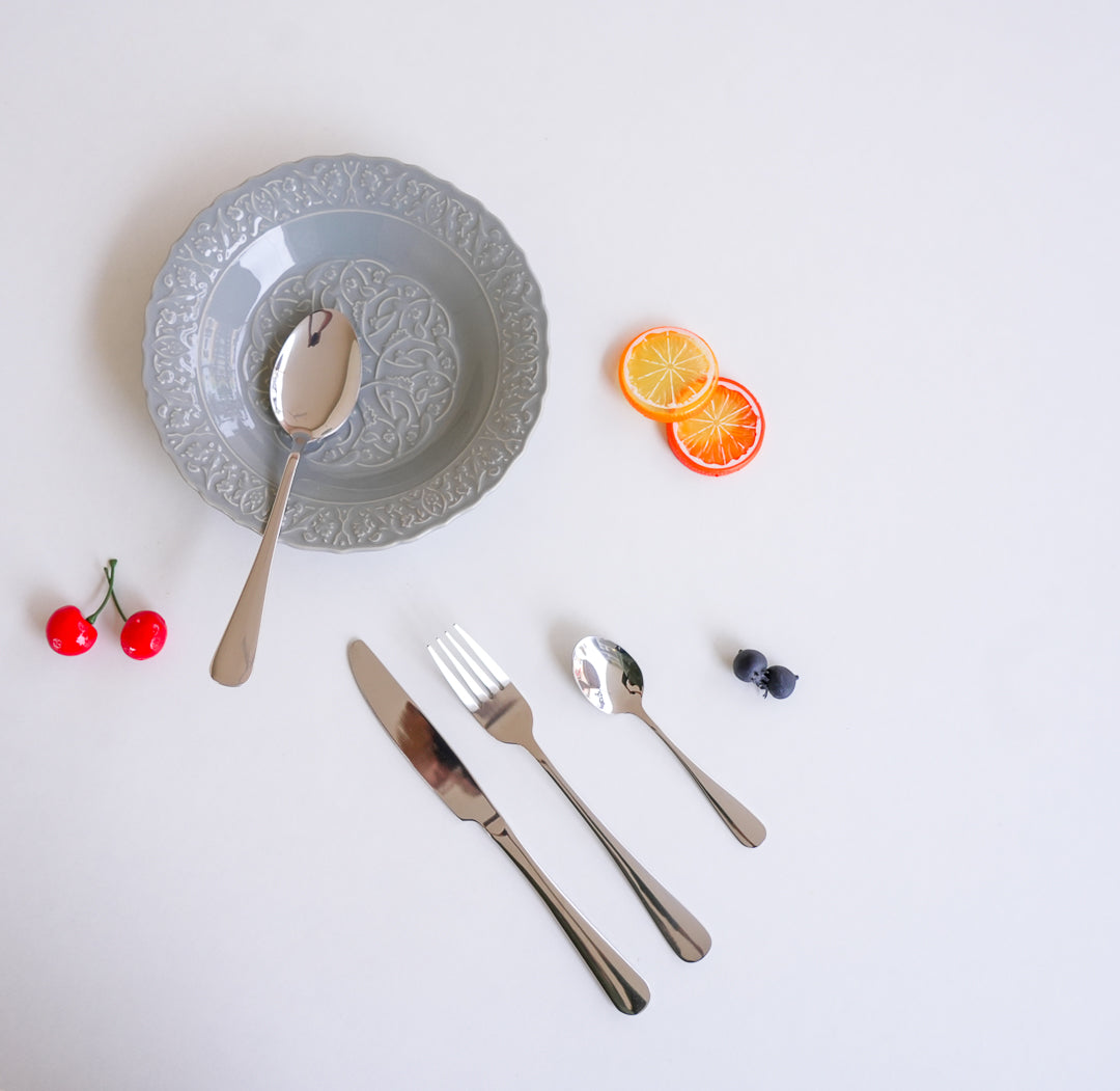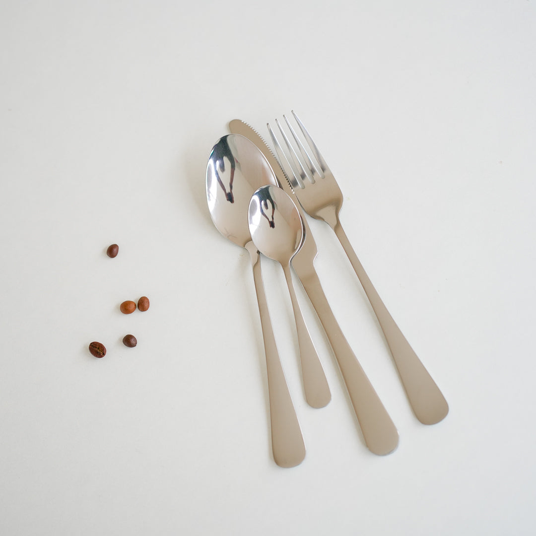 - Set of 24: Includes 6 spoons, 6 forks, 6 knives, and 6 dessert spoons, designed to complement any table setting with its classic yet sophisticated aesthetic.