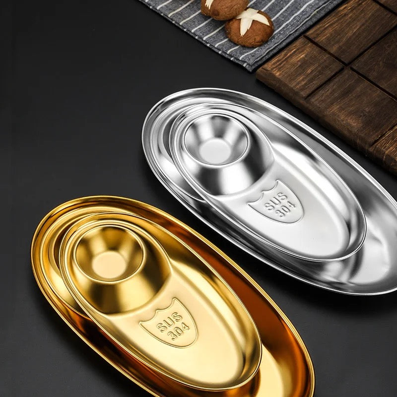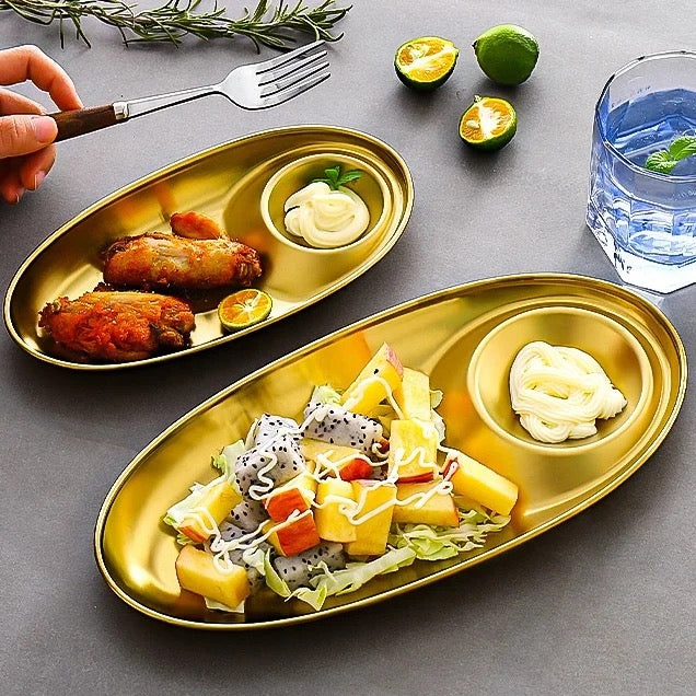 Gold Starter Snack Plate - Stainless Steel Chip & Dip Platter