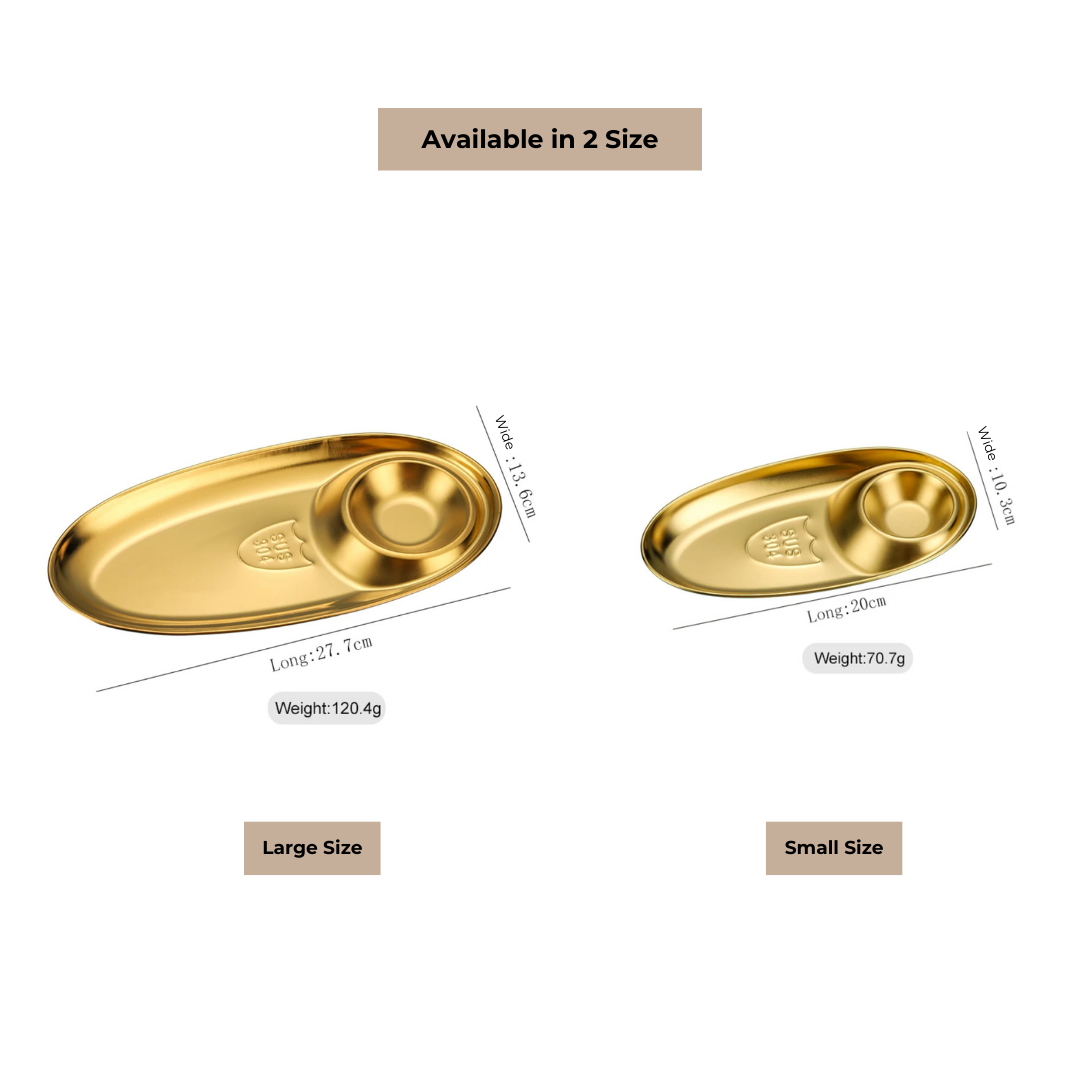 - Elevate your dining experience with our exquisite Korean Dumpling Plate, meticulously crafted from high-quality 304 stainless steel and adorned with a luxurious gold PVD finish.
