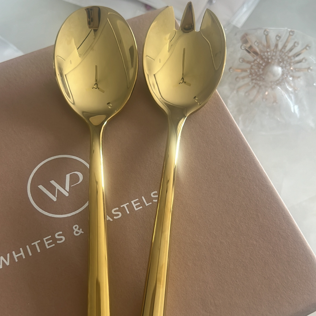 Serving Spoon and Serving Fork Set - Gold Stainless Steel