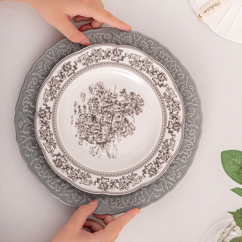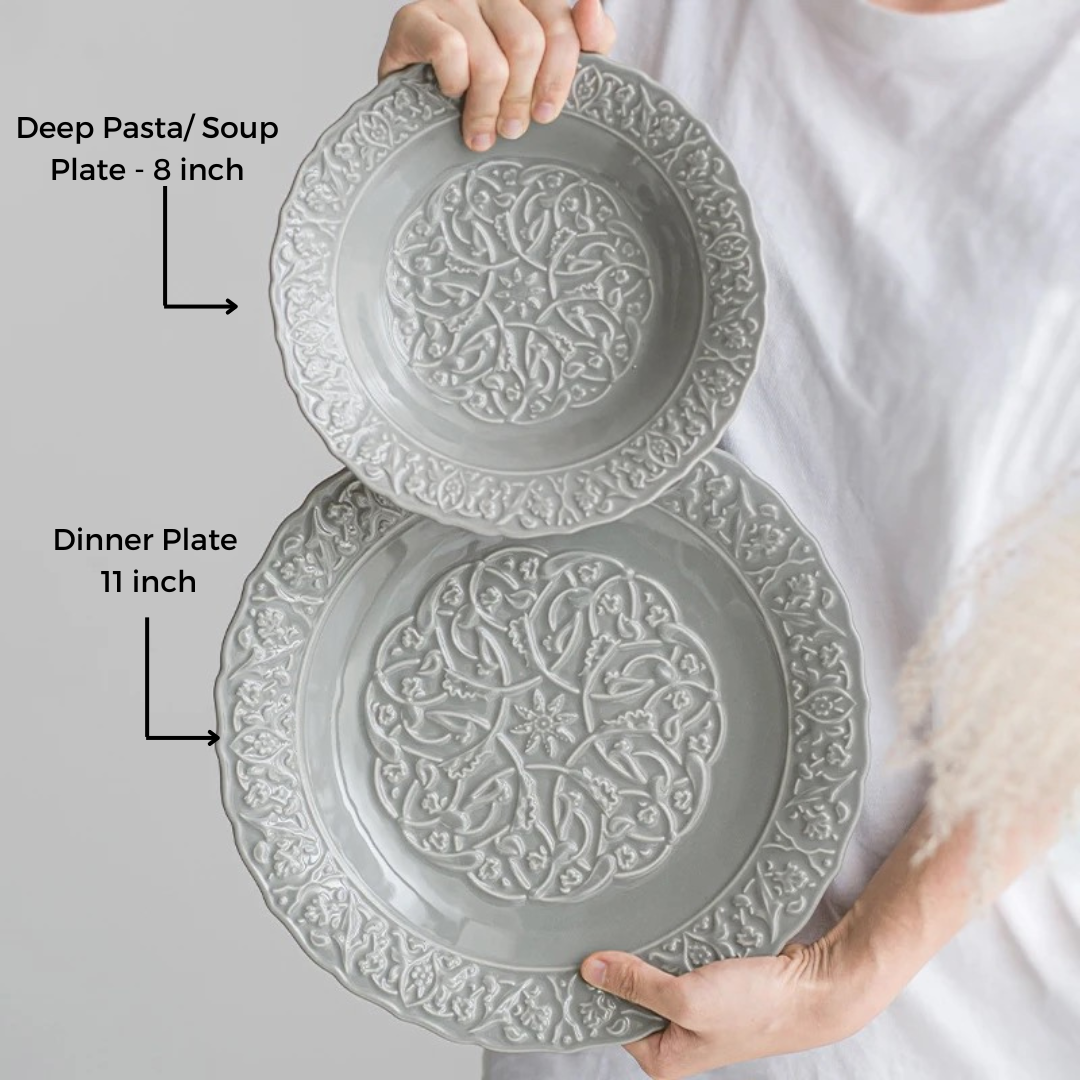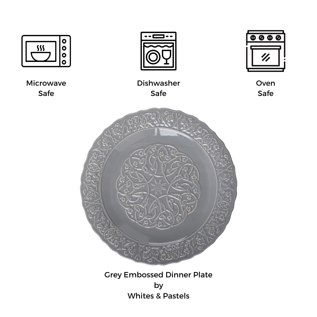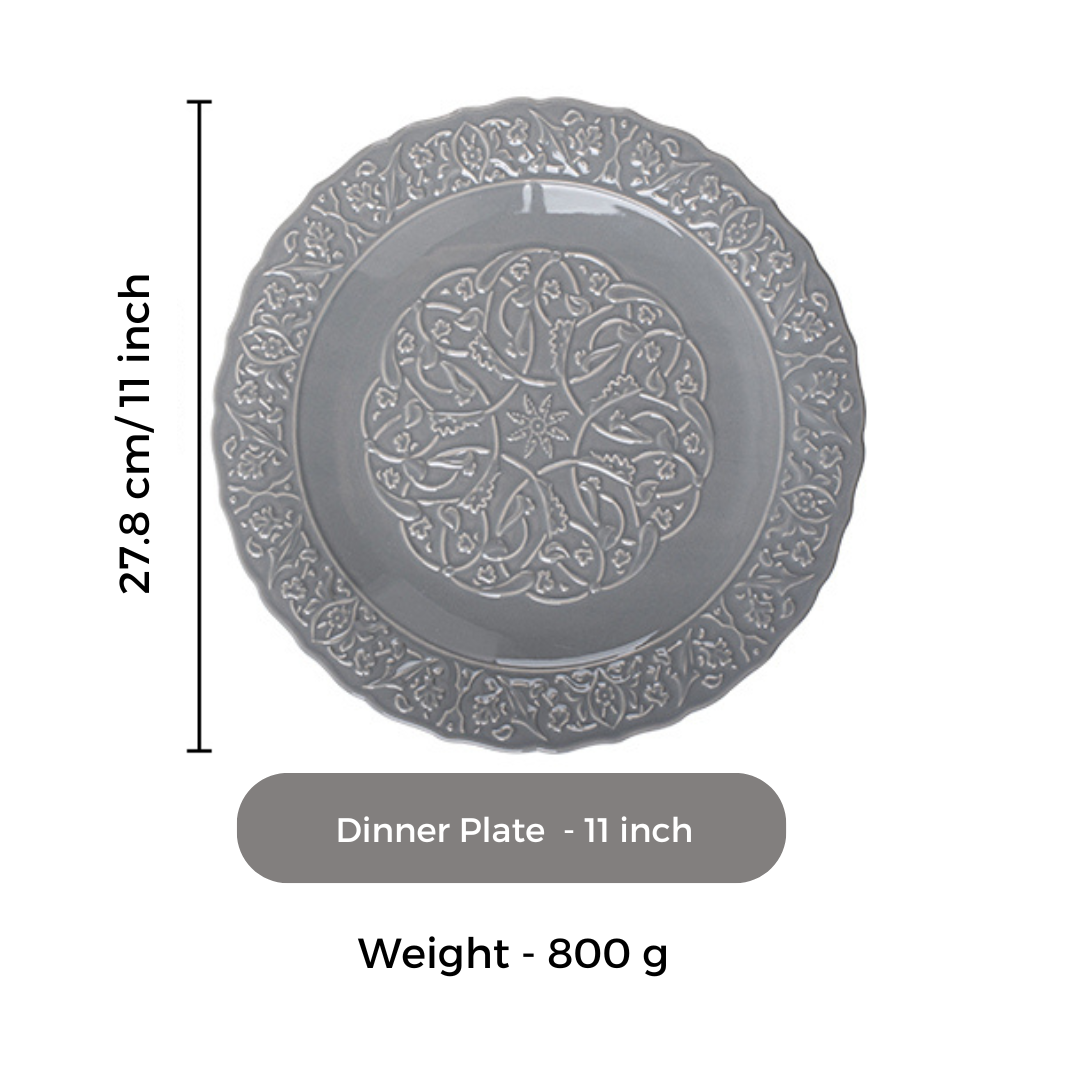 - Luxurious Design: Crafted from high-quality ceramic with an intricately embossed grey design, offering elegance and sophistication for any dining table.