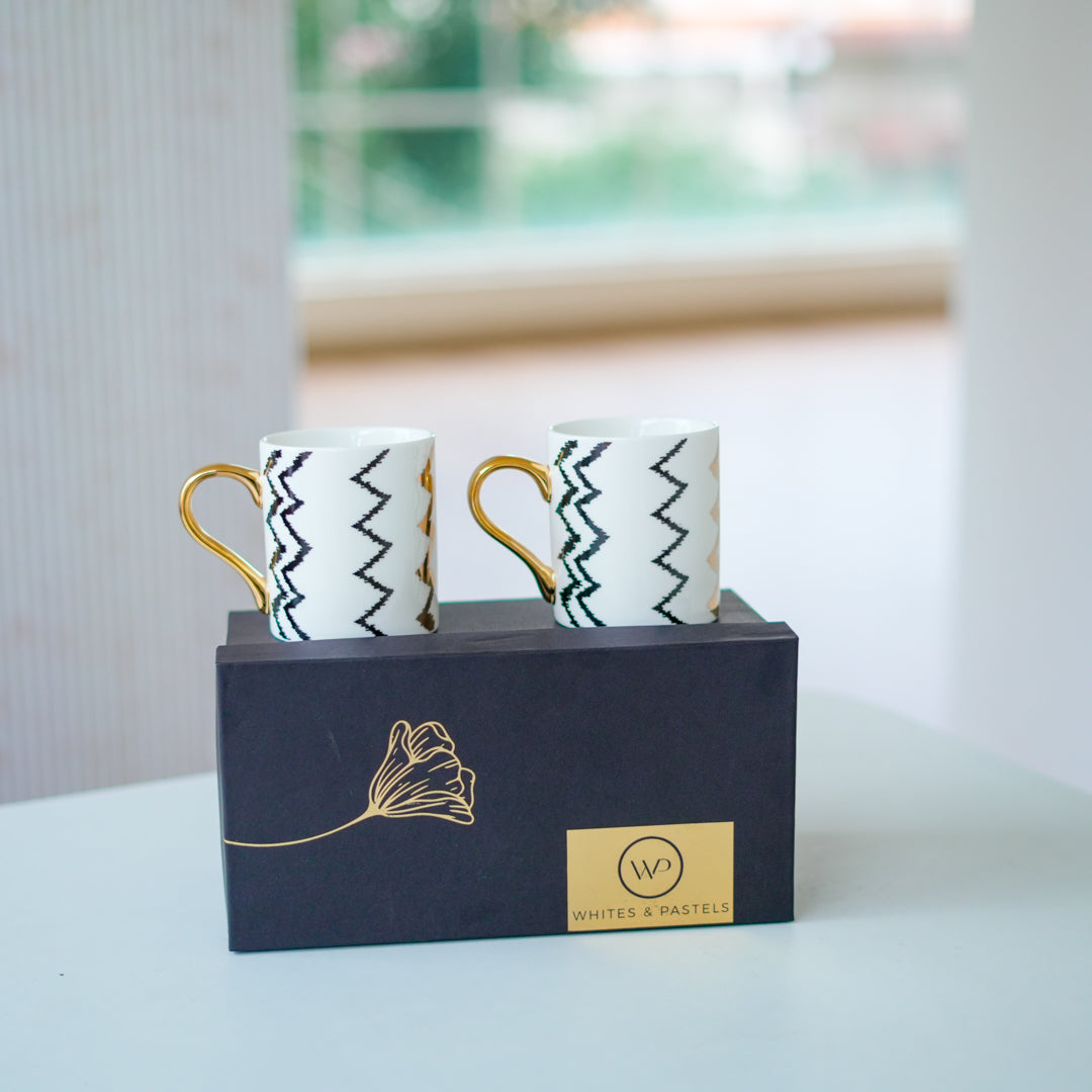 Gift Set - Coffee Mug with Gold Handle - Geometric
