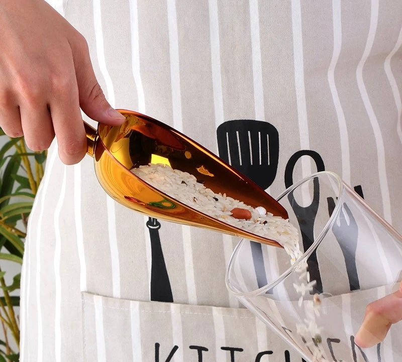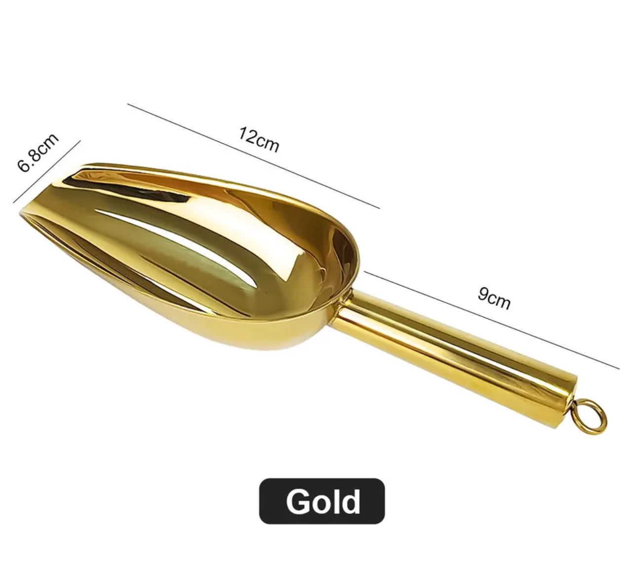 - Elevate Your Kitchen Elegance: This stainless steel ice shovel with a polished gold PVD coating exudes luxury and sophistication, making it the perfect addition to any upscale kitchen or bar setting.
