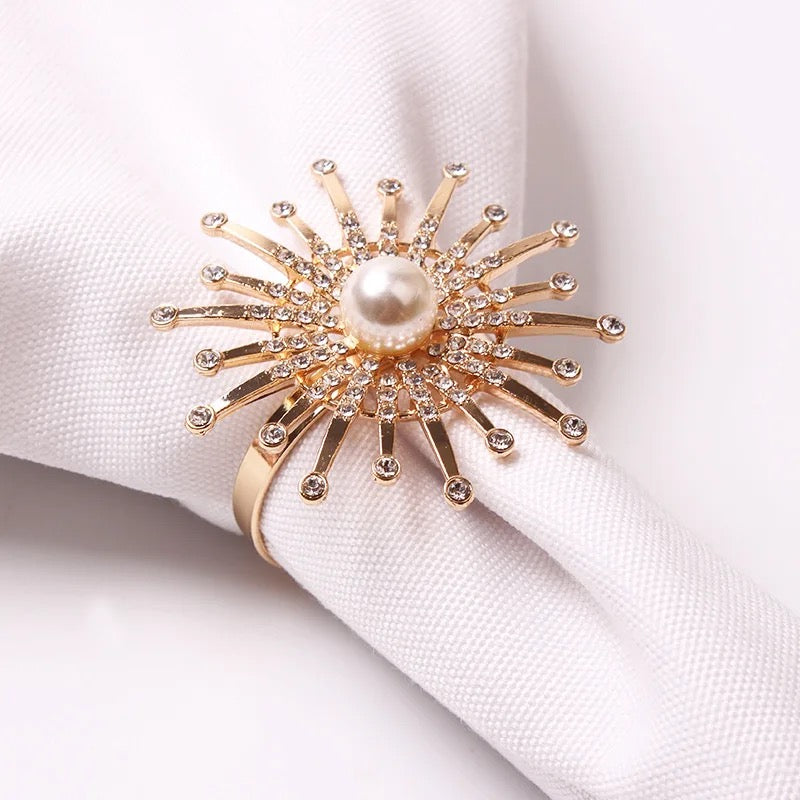 Luxury Sun-Shaped Gold Napkin Rings – Ultra-Luxurious Design with Stonework (Set of 4/6/8)