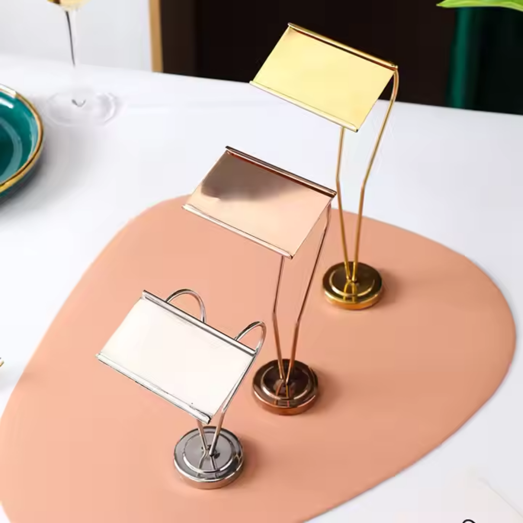 Elegant Buffet Display Solution – This metal name card stand adds a luxurious touch to buffet setups, helping guests identify dishes with ease at home parties, events, or hotels.