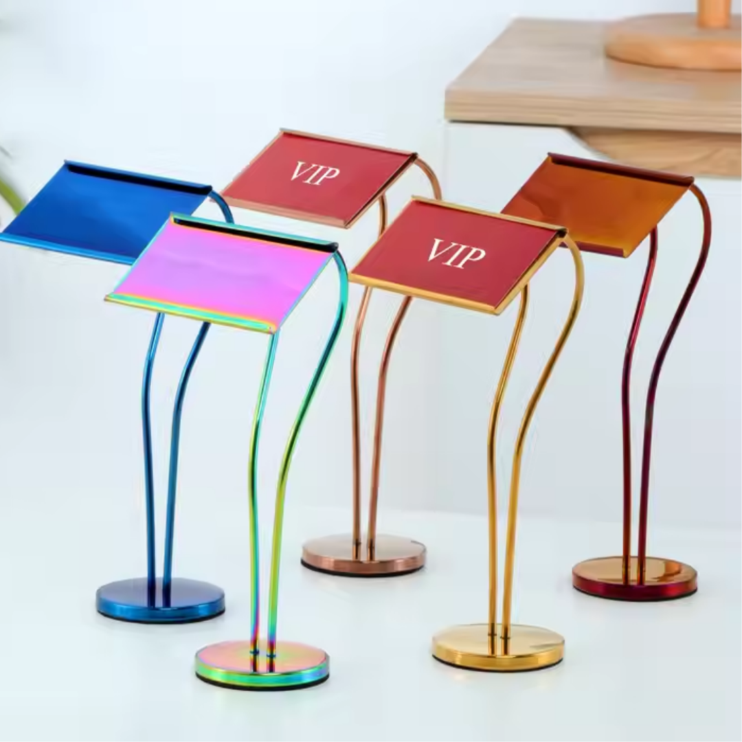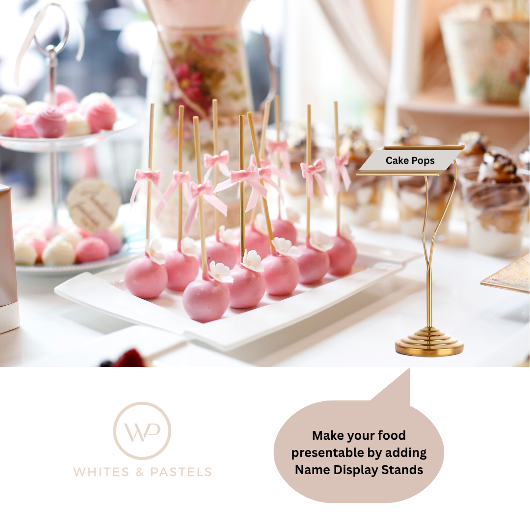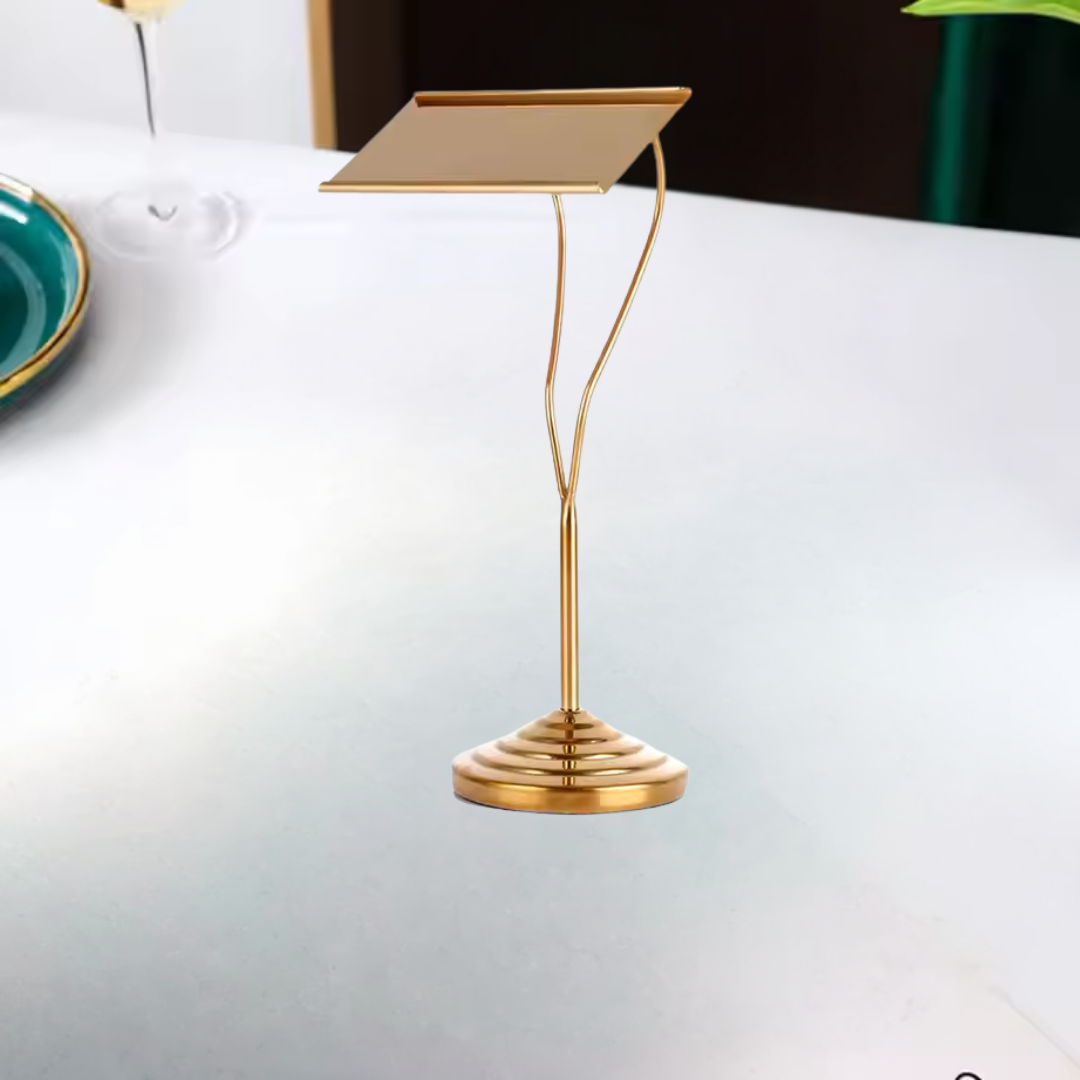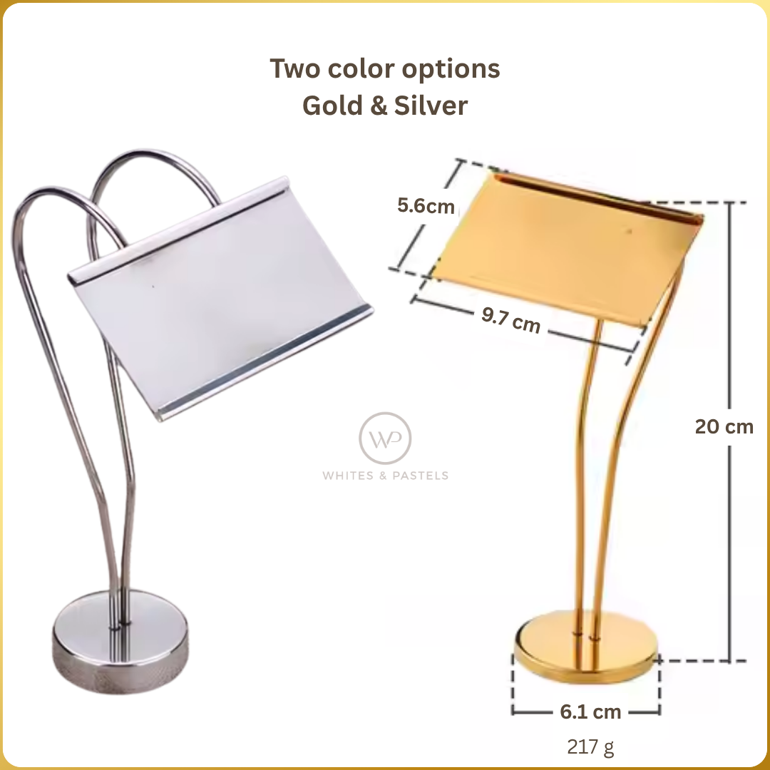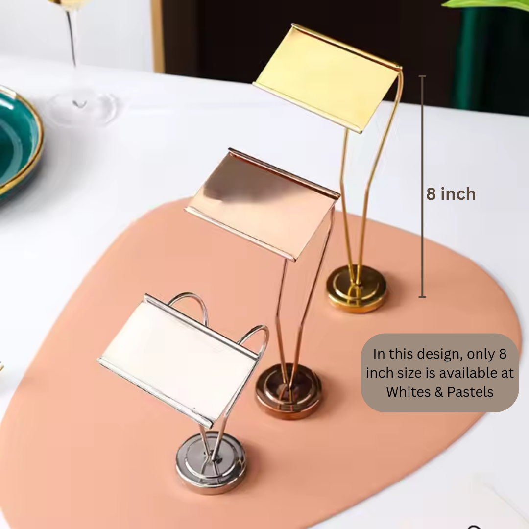 Luxury Metal Buffet Dish Name Stand – Gold & Silver | 8-Inch Table Display Stand for Events, Restaurants & Home Entertaining