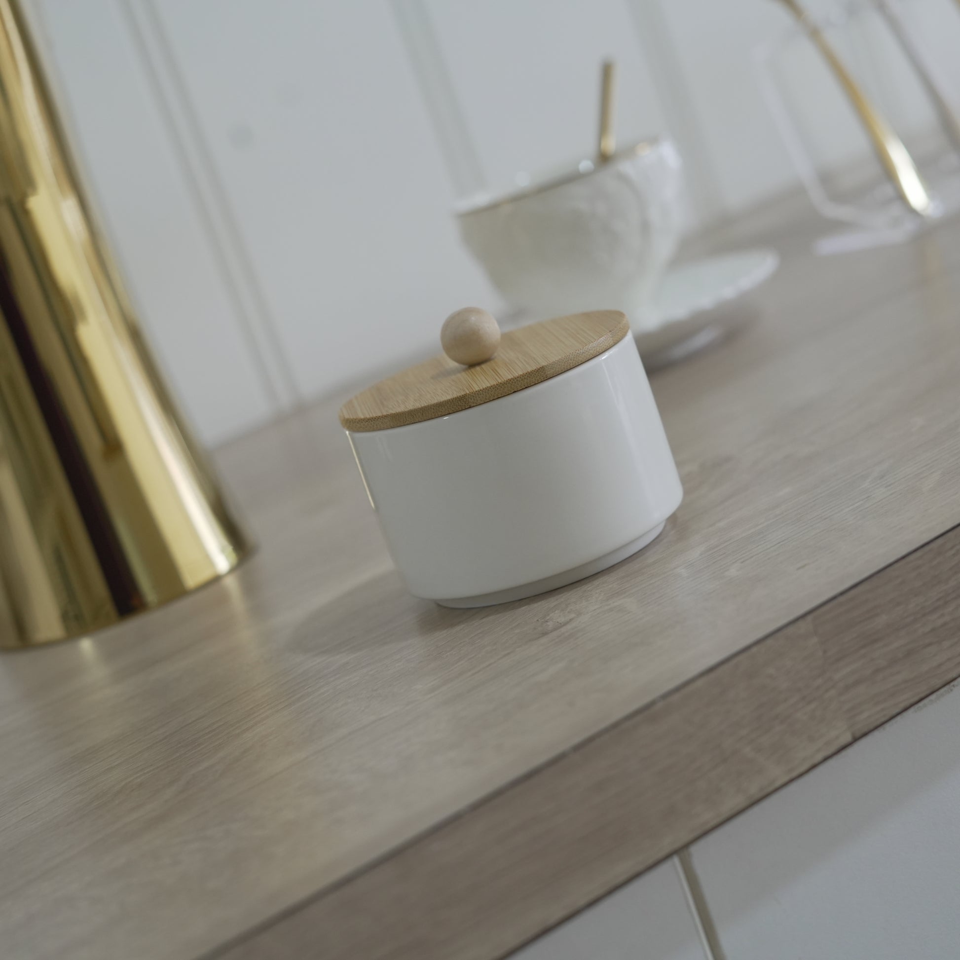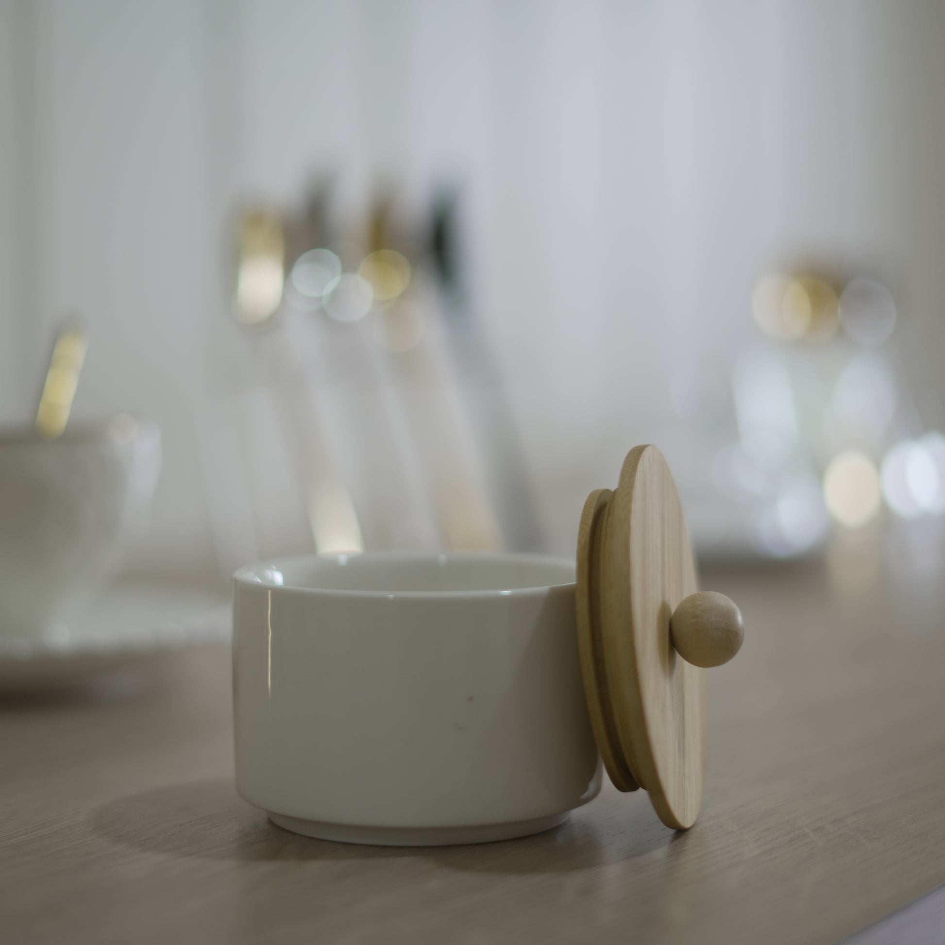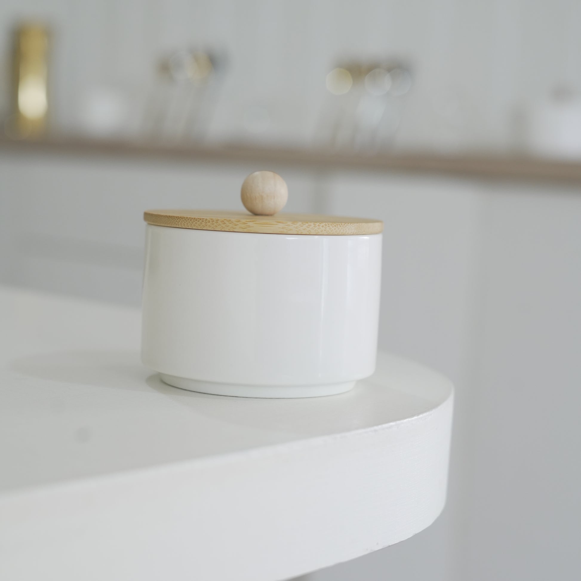 Small White Ceramic Jar with Wooden Lid – 200 ml Multipurpose Storage Container