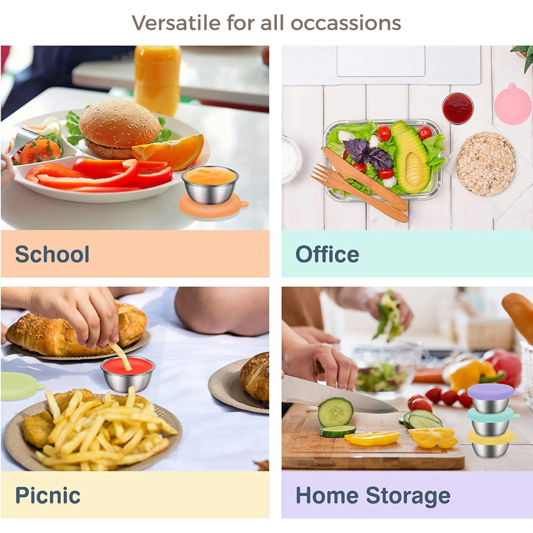 Perfect for serving dips, sauces, condiments, and chutneys or for carrying small portions of snacks and spices while on the go. Each bowl includes a matching lid that ensures convenience, hygiene, and portability — ideal for office lunches, picnics, or parties.