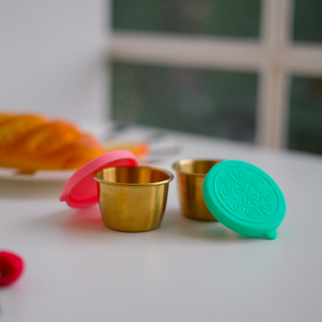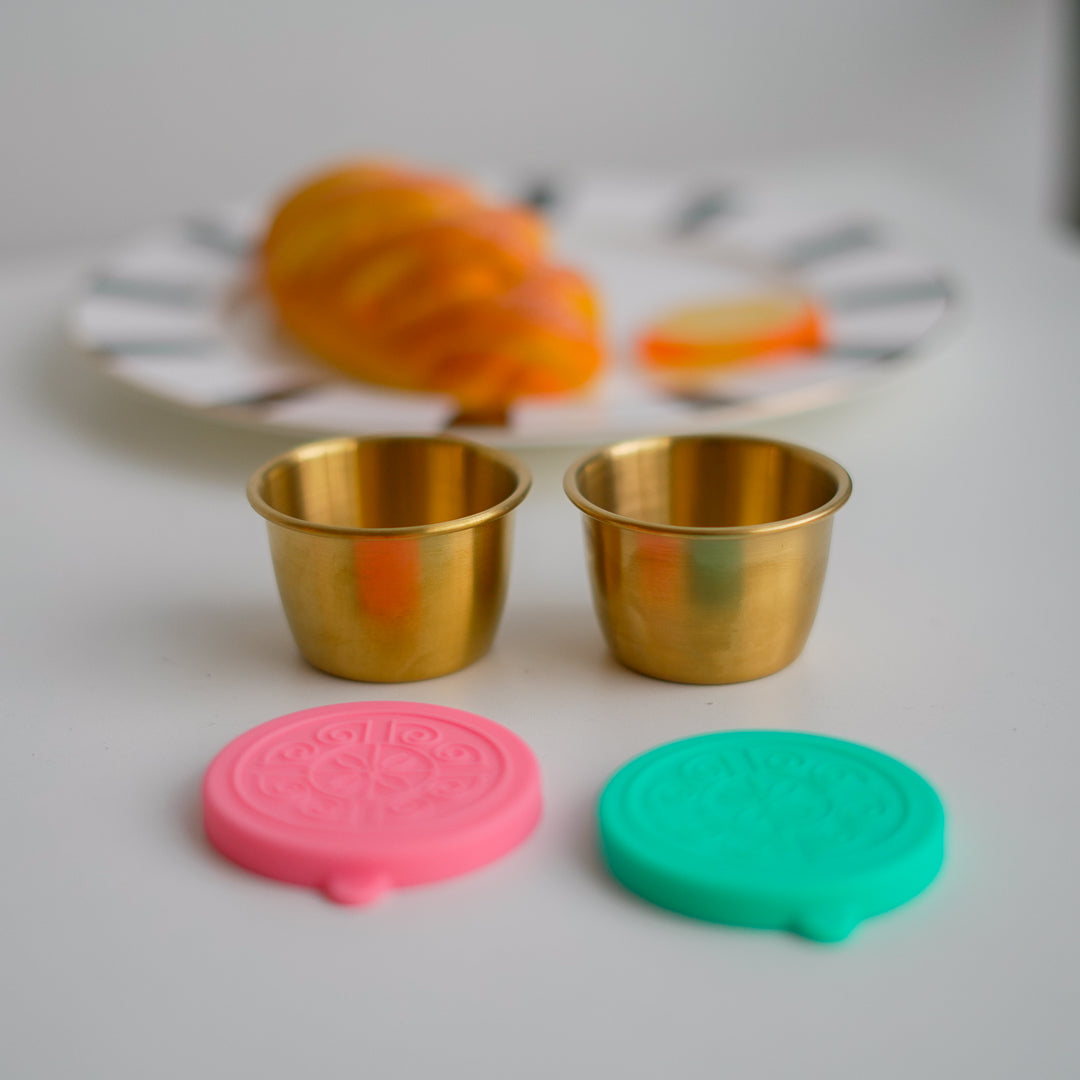 Set of 2 Stainless Steel Dip Bowls with Lids – 40ml & 70ml | Gold & Silver Finish