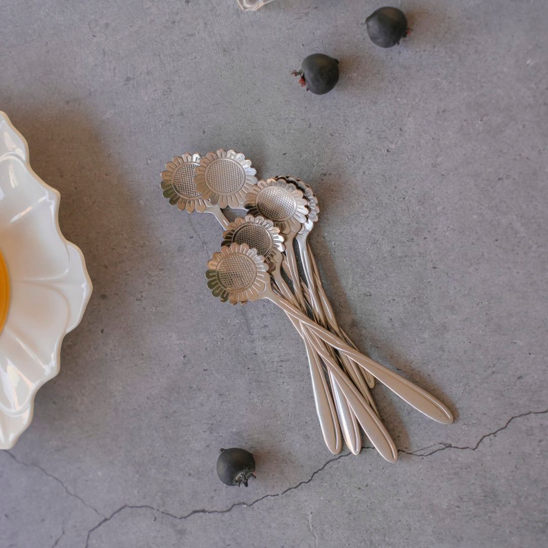 The sunflower-inspired detailing elevates your dining experience, making them perfect for both casual meals and special occasions. Designed in an ideal size, these spoons are great for serving desserts or stirring tea, coffee, and juices. Available in sets of 6 and 12, they are a versatile addition to your cutlery collection and a lovely choice for hosting and gifting
