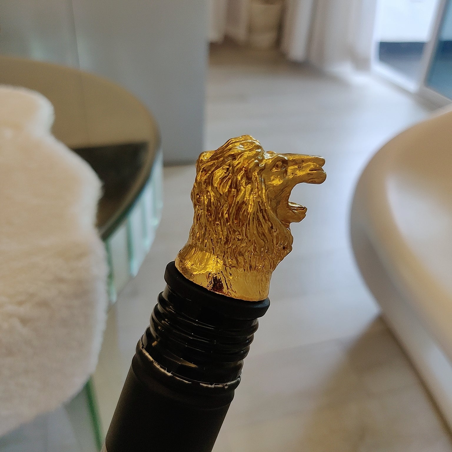 The heavy-duty cold-cast lion head bottle pourer is made of zinc alloy. The interior material is 304 stainless steel and food grade silica gel. The exterior material is high-quality zinc alloy, which is durable and corrosion-resistant, and can be used repeatedly. The stopper uses food-grade silica gel, which is safe and environmentally friendly.