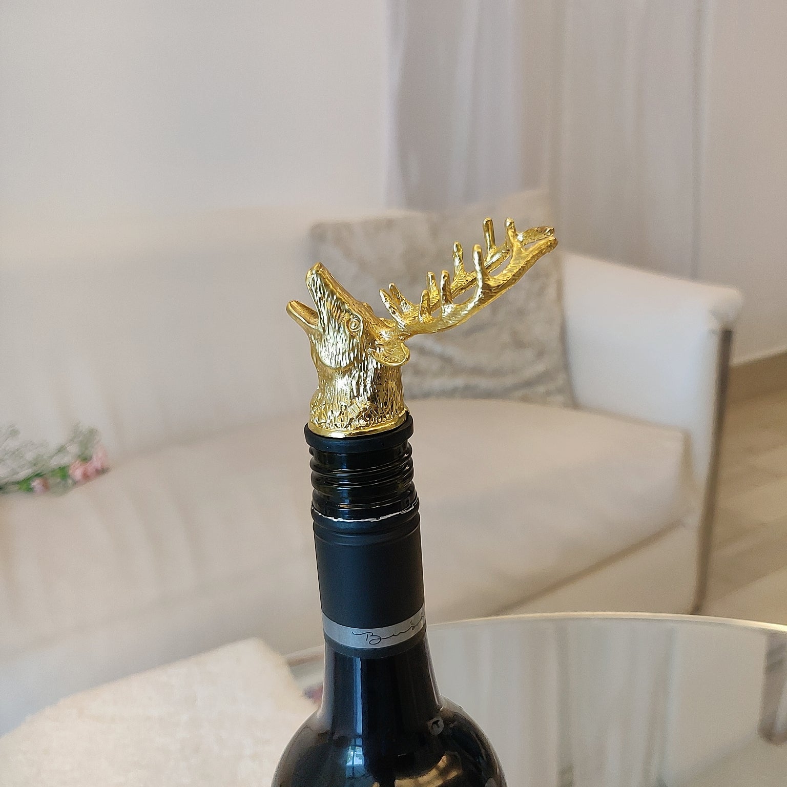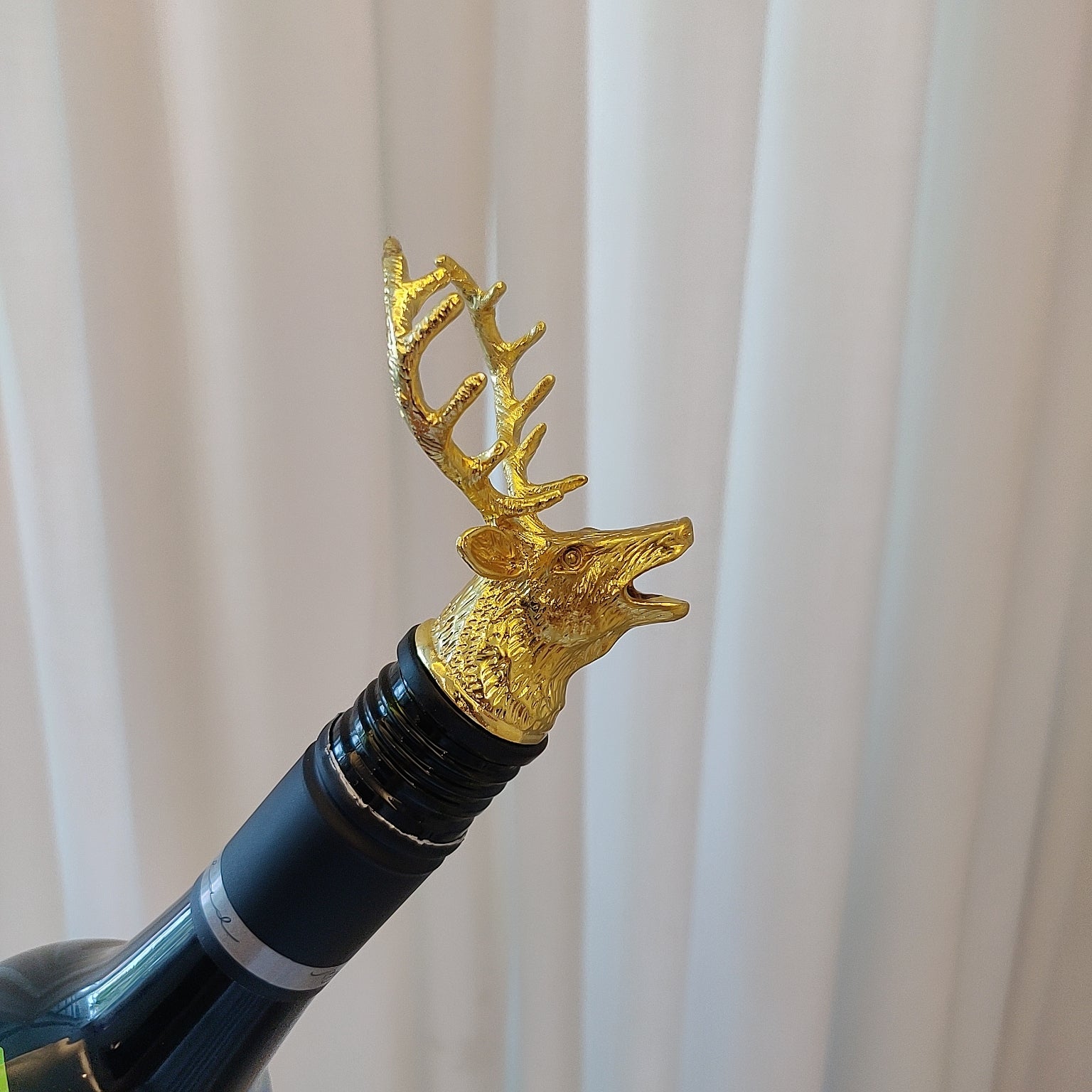 The heavy-duty cold-cast Reindeer head bottle pourer is made of zinc alloy. The interior material is 304 stainless steel and food grade silica gel. The exterior material is high-quality zinc alloy, which is durable and corrosion-resistant, and can be used repeatedly. The stopper uses food-grade silica gel, which is safe and environmentally friendly.