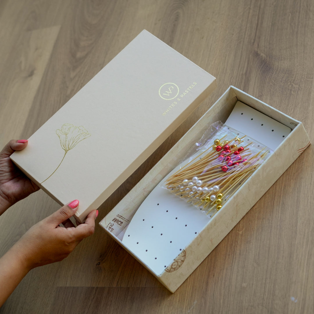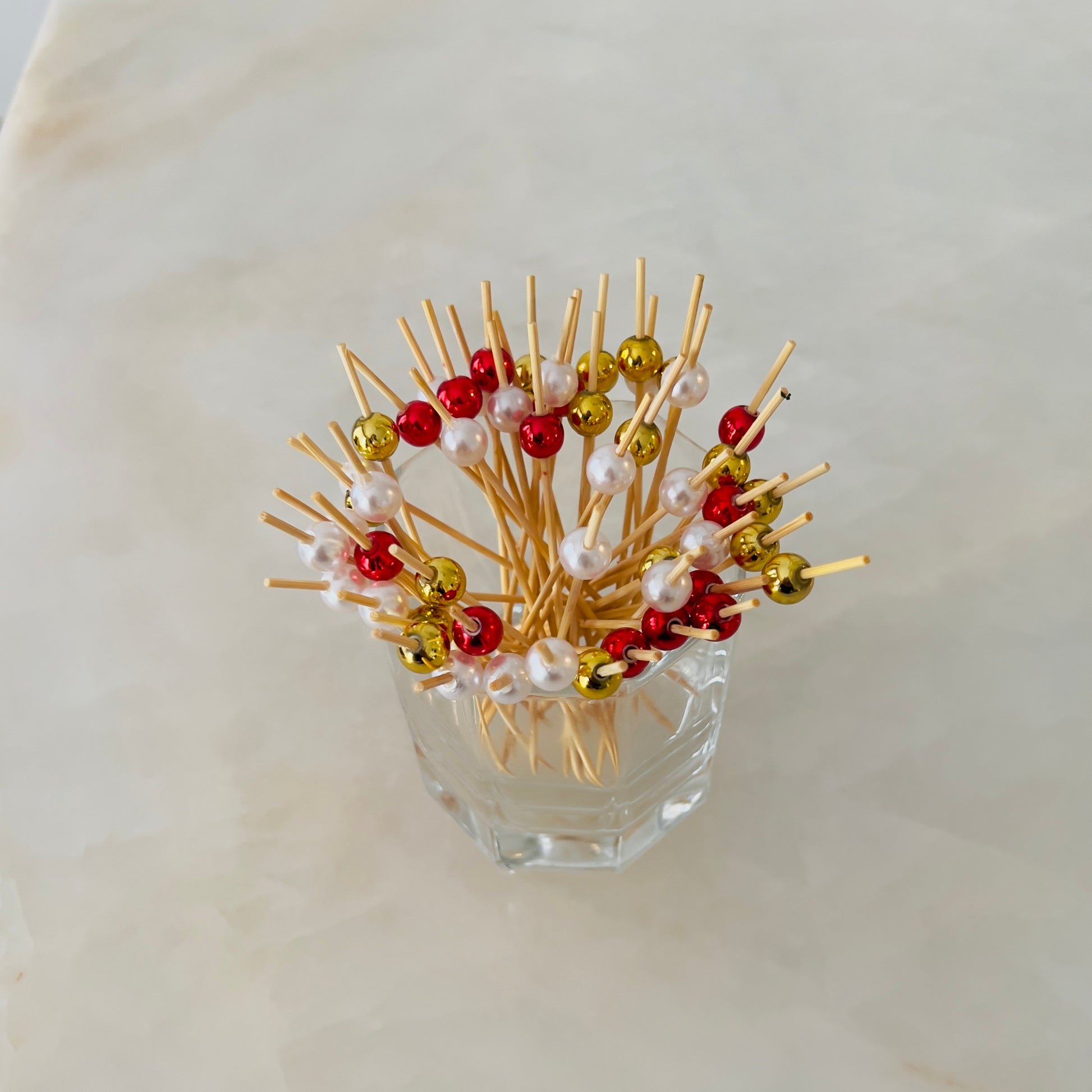 - We provide a complementary set of 50 beautiful picks that are aesthetically designed with a pearl on its edge making your serving experience aesthetically pleasing!